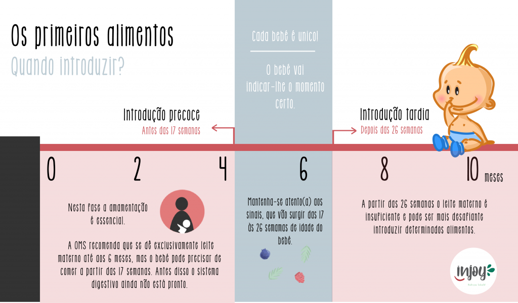 É importante referir que, como acontece com qualquer outro tipo de aprendizagem, a cronologia da introdução de alimentos não pode ser rígida, devendo ser respeitadas as particularidades do bebé. Vejo muitos pais preocupados porque querem marcar no calendário o dia em que o bebé vai começar a comer. Mas saiba que só ele sabe qual a altura certa para esse agendamento.
